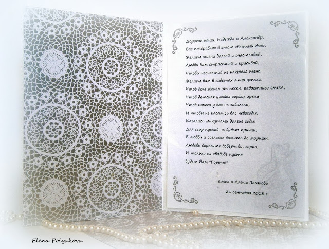 УдалитьЯ, думаю, молодые поставят её, т.е. папку, на полочку, полочек у сестры хватает :)), а свидетельство о браке обычно дома хранится и очень редко требуется...